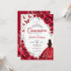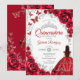 Invitation Floral Red Silver Quinceanera