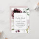 Cette invitation à la douche à couple romantique fleurie est parfaite pour une douche de mariage élégante. Le design boho rustique moderne présente des fleurs d'aquarelle romantiques dans des tons doux de bordeaux, mauve, rose rousse et blanc crème avec des feuilles verts.