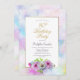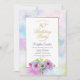 Une invitation à la fête du 80e anniversaire bleu et rose avec une bordure d'aquarelle peinte d'or et de pastel.