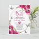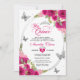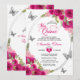 Invitation Floral rose Argent Tiara Papillon Mis Quinceañera