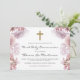 Invitation Floral rose avec Croix première sainte communion
