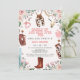 Floral Pink Western Rodeo Baby shower Invitation Western, cowgirl ou rodéo invitation baby shower avec divers articles occidentaux et arrangements de cactus à fleurs roses. Cette invitation de baby showers de pays sud pour filles est idéale pour un baby shower fille.