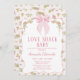 Floral rose Tiny Bow Love Shack Baby Baby shower Invitation Arc rose doux et minuscule motif rose floral amour shack bébé thème baby shower invitation pour bébé fille avec également un cadre blanc ondulé.