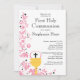 Notre chic invitation à la communion traditionnelle et moderne est une invitation à la communion sainte. Notre invitation rose & blanc présente un cadre élégant rose floral avec un chalice & sainte eucharistie sur un arrière - plan blanc immaculé. Le dos de notre a une couleur assortie pour une touche spéciale supplémentaire. Un design moderne et frais qui impressionne votre client. Une invitation parfaite pour une première communion sainte. Visitez notre boutique pour obtenir des choix de couleurs supplémentaires. ©Mujka ©Zenware Designs