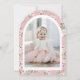 Éblouissez vos invités avec cet élégant invitation de premier anniversaire avec un mignon petit lapin dans un panier en osier avec de belles fleurs roses. Ajoutez simplement les détails de votre événement sur ce modèle facile à utiliser et ornez cette carte avec votre photo préférée pour en faire une invitation unique.