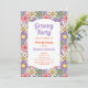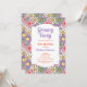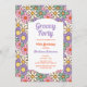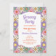 Vert, violet, jaune et rose rétro fleurs super sans couture motif Invitation d'anniversaire. Ce design amusant et dynamique est parfait pour quiconque cherche à ajouter une touche de rétro à sa journée spéciale. Avec ses couleurs audacieuses et ses motifs floraux super, cette invitation donnera le ton d'une fête mémorable.