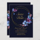 Invitation Floral Royal Blue Moderne Économisez La Date