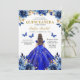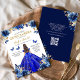 Invitation Floral Royal Blue QR Code Princess Quinceanera