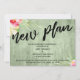 Invitation Floral sur bois vert "Nouveau plan" Mariage report