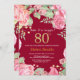 Invitation Floral Surprise 80e Anniversaire Or Bourgogne Roug