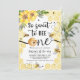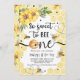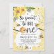 Floral So Sweet To Bee One Bee 1st Birthday Invitation Sweet girl's bee thème de l'invitation de premier anniversaire avec un titre de calligraphie moderne, abeilles, ruche, et les coeurs. Cette invitation si douce à être un 1er anniversaire comporte aussi quelques tournesols et feuillage.
