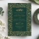 Elegant Floral Vintage Gold & Emerald Islamic Muslim Wedding Invitation