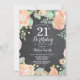 Invitation florale d'anniversaire de pêche botanique 21ème. Invitation rose florale d'anniversaire de pivoines pour des femmes. Fleur florale d'aquarelle. Fleurs élégantes de rose et de pivoine de rose. Anniversaire adulte. Arrière - plan de tableau. Noir et blanc. 13ème 15ème 16ème 18ème 20ème 21ème 30ème quarantième cinquantième soixantième soixante-dixième quatre-vingtième quatre-vingt-dixième 100th, tous âges. Pour davantage de personnalisation, cliquez sur svp la "personnaliser il" bouton et utilisez notre outil de conception pour modifier ce modèle.