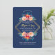 Bleu marine un beau, invitation d'aquarelle avec un cadre polygonal d'or et groupes de fleurs et de feuillage roses et rouges. (<a href='https://www.freepik.com/free-vector/watercolor-floral-frame-with-golden-polygonal-lines_2628011.htm'>Conçu par Freepik</a>). <br/><br/>Il est facile customiser la carte avec vos mots, police et couleur de police<br/><br/>Pas exactement que recherchez-vous ? Tous nos produits peuvent être conçus en fonction du client pour répondre à vos besoins à aucun supplément<br/><br/>Contactez-simplement nous chez askcottonlamb@gmail.com. <br/><br/>Produits coordonnés disponibles : Demandez-juste nous !