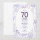 Célébrez un jalon vraiment spécial avec cette élégante invitation d'anniversaire 70 ans lavande et violette, qui présente un design toile de fond floral vintage et moderne. Un design moderne mais intemporel et vintage.
