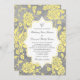 Cette invitation florale vintage jaune, grise, et blanche décorée d'un monogramme élégante et moderne de mariage damassé a la grande pivoine de regard texturisée jaune ou le type rose fleurs sur un arrière - plan gris sale de damassé. Ajoutez votre propre monogramme ou logo. Il y a une zone de texte sur de nouveau à ajoutent n'importe quel texte supplémentaire que vous pouvez vouloir, ou vous pouvez enlever l'image et le texte blancs arrières de secteur de cadre en employant la caractéristique "claire" dans la section de personnalisation. Elle serait parfaite pour un mariage orienté jaune et gris, ou pour un cru ou un mariage victorien de style. Il ferait également très beau pour une invitation d'anniversaire de mariage aussi. Le *** NOTENT SVP là n'est aucun élément augmenté à cette invitation. Tout est imprimé à plat. Le texte et le papier est tout personnalisable. Le *** NOTENT SVP que si vous changez la police ou la taille de la police, il peut changer comment votre invitation imprime. Il imprimera la manière que vous la voyez sur votre moniteur, ainsi si vous avez des questions d'alignement, ou des problèmes de classement par taille, svp me contactent pour l'aide. Je ne verrai pas votre invitation une fois que vous la commandez, et Zazzle n'éditera rien (des typos, alignement, etc.). Si vous avez besoin de l'aide ou voudriez n'importe quels autres articles assortis, envoyer veuillez votre demande à niteowlstudio@gmail.com.