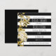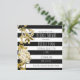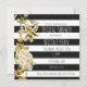 Invitation florale noir et blanc rayé avec finition dorée. Personnalisez pour n'importe quel événement.