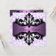 Invitation florale pourpre et noire élégante d'anniversaire de damassé