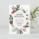 Dîner Mariage à thème hivernal invitation avec cadre de verdure hivernale et fleurs. Customisez avec vos informations pour le couple. Cliquez sur "cliquer pour customiser plus loin" pour modifier le style, la taille ou la couleur de la police.