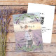 Un arrière - plan blanc décoré de fleurs de lavande et de verdure d'eucalyptus. Personnalisez et vos noms et détails. Ajoutez une photo de couverture. Il y a une superposition photo pour que vous puissiez lire le texte. Retour : Ajoutez l'URL de votre site Web mariage au code QR pour plus de détails et/ou RSVP.