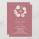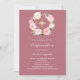 Arrière - plan rose couleur or, décoré de fleurs roses et blanches aquarellées dans une couronne et une croix dorée. Personnalisez et ajoutez un nom et des détails.