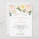 Un arrière - plan blanc chic. Décoré de fleurs aquarellées, de fleurs roses florales, d'orchidées blanches et d'une gerbera jaune, de végétation d'eucalyptus et de sprigs en faux or. Personnalisez et ajoutez vos noms et les détails du mariage. Lettres noires et dorées. Dos : couleur arrière - plan verte.