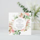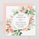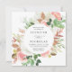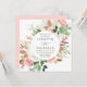 Élégantes invitations de mariage florales avec vos détails mariages encerclés par un cadre fleuri de roses d'aquarelle rose vif et tulipes avec feuilles vert et cuivre luxuriants. Les invitations à un mariage floral se retournent vers un arrière - plan rose pâle. Conçu pour coordonner avec notre collection de mariages florale de printemps de Blush.