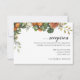 Jolie, élégante, moderne et bohème cartes de réception de mariage pour votre occasion spéciale! Le design s'accorde avec le reste de la collection de feuillages d'Orange Leaf. Aquarelle fruit orange avec feuillage feuille foncé et vert clair encadre le haut de votre carte de réception de mariage détails, inverser la carte pour révéler un arrière - plan vert foncé. Personnalisez avec vos détails de réception de mariage, y compris le moment, le lieu et tout autre détail comme le stationnement ou le transport.