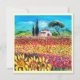 Paysage toscan, beauté vibrante et expressive de la campagne italienne et champs de fleurs colorés en jaune vif orange, rose, fuchsia, violet, rouge, vert, brun, beaux prés d'été, fleurs, cyprès et oliviers, vieille ferme rustique sous le ciel bleu. Peinture acrylique sur toile .