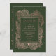 Illustration moderne dessinée à la main et élégante florale faux rose or sur chasseur vert avec cadre faire-part de mariage. Parfait pour une mariage élégante et chic.
