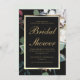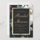 Botanique florale classique et élégante sur le front noir avec texte couleur or et cadre faux or, et douce menthe verte retour nuptiale invitation douche.