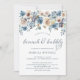 Cette très belle et branchée invitation "bunch and bubbly" à la nuptiale présente des fleurs d'aquarelle dans des tons neutres, beiges, ivoire et bleu poussiéreux et un élégant scénario de calligraphie bleue.