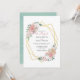 Ce design élégant présente vos détails mariages à l'intérieur d'un cadre géométrique doré moderne décoré de deux bouquets de fleurs fraîches dans les tons blanc et doux de rose et pêche parsemé de feuilles d'eucalyptus. Le dos de la carte révèle un lave-couleur vert émeraude clair. Un beau choix pour vos fêtes de printemps ou d'été. Ajoutez votre propre libellé à l'aide du modèle du menu personnaliser. Il fait partie d'une collection mariage exquise.