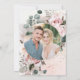 Annoncez votre journée spéciale en style avec cette romantique enregistrer la carte de date. Avec ses roses roses rousses, sa verdure d'eucalyptus et son écriture élégante, il crée une façon intemporelle et gracieuse de partager les nouvelles de votre prochain mariage.