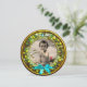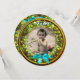 Couronne élégante avec fleurs de fruits, classique, vibrante art de la Renaissance fine, chef-d'oeuvre de Bottega della Robbia ( Florence - Italie ) .Classy rond / forme circulaire modèle photo invitation en or jaune, marron, vert, bleu aqua turquoise, couleurs turquoise avec pierres de pierres de gemme bleu 3D. Design artistique et cool, facile à customiser avec votre texte