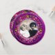Élégant, classique, vibrant beaux-arts de la Renaissance, chef-d'œuvre de Bottega della Robbia (Florence - Italie). Élégant modèle d'invitation photo rond/cercle en or jaune, noir, violet, rose, fuchsia, violet avec des pierres précieuses jaunes topaze 3D brillantes facilement personnalisables avec votre texte et vos initiales. Design artistique et cool, facile à personnaliser pour une cérémonie de mariage, carte d'annonce de nuptial, cartons de table, carte "save-the-date", carte de remerciement, baby showers, bridal showers, Sweet 16, fêtes d'anniversaire de Quinceanera, Bat Mitzvah, fêtes de fiançailles romantiques, Noël, vacances, bureau, réunions de famille, célébrations du nouvel an, anniversaires, rassemblements, remises de diplômes scolaires, concert, réc