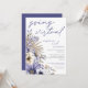 Pour les moments où vous ne pouvez pas vous rassembler en personne, inviter vos invités à célébrer avec vous via la diffusion en ligne est la prochaine chose la plus agréable! Ici, les flores et le feuillage de couleur violet et lilas modernes bordent le côté gauche, avec un élégant script set Going Virtual et une typographie en minuscules élégante alignée sur le côté droit. Le dos est dans une ombre coordonnée de violet.