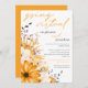 Pour les moments où vous ne pouvez pas vous rassembler en personne, inviter vos invités à célébrer avec vous virtuellement en ligne est la prochaine chose la plus agréable! Ici, des flores jaunes et des feuillages gris modernes aquarelles bordent le côté gauche, avec et élégant script set et une typographie en minuscules élégante alignée sur le côté droit dans un mélange de jaune et de gris. L'arrière est dans une teinte de couleur jaune coordonnée.