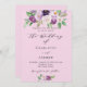 Un arrière - plan rose. Décoré de fleurs pourpres aquarelles et de verdure. Personnalisez et ajoutez vos noms et les détails de votre fête. Retour : ajoutez l'URL de votre site mariage au code QR pour plus de détails.