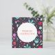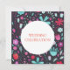 Aquarelle botanique moderne de fleurs sauvages bleu aqua et violet sur un arrière - plan foncé. Une magnifique invitation carré de coordination que vous pouvez modifier pour convenir à votre propre célébration.