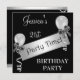 Invitation à la fête d'anniversaire pour hommes ou femmes. Tous les événements, les célébrations, les annonces et les invitations aux fêtes d'anniversaire. Convient à tous les anniversaires et événements d'âge. Rsvp est disponible sur demande dans le même style. Magnifique Plaque en métal blanc argent d'argent avec texte temps de fête superposé sur le noir avec des touches d'argent clair. Ballons, Streamers et Silver Bows. Customiser de modifier le style et la taille de la police pour la personnaliser.