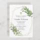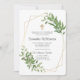 Composé de typographie serif. Le tout sur fond d'arrière - plan blanc avec feuillage vert avec faux croix d'or et cadre géométrique. L'arrière de la carte a un panneau en bois. Ce produit est conçu par Select Party Supplies., exclusif pour Zazzle. Disponible ici : http://www.zazzle.com/store/selectpartysupplies