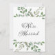 Cette invitation au brunch post-mariage branchée présente un cadre d'abondants feuilles vert aquarelle et quelques petits fruits sur un arrière - plan blanc propre. Le verso de l'invitation dit aussi "Nous sommes mariés" en calligraphie élégante. Parfait pour votre élégance et votre minimalisme après votre réception de mariage ou de célébration.