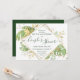 L'élégante invitation wedding shower de ce couple tropical présente un feuillage exotique aux accents dorés. Un cadre doré géométrique moderne met en évidence le texte vert foncé. Les plaquettes d'or accentuent le design botanique et apporte un peu de fantaisie sophistiquée à l'invitation. Cet invitation insulaire est parfait pour toute douche de mariage extérieure, de plage ou de destination.