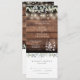 Un tout en un faire-part de mariage avec de la sauge aquarelle et du feuillage vert lilas, de jolies lampes à cordes et des jarres de maçon sur un arrière - plan de panneaux de bois rustique. L'invitation comprend une carte RSVP qui peut être coupée et des informations sur les invités. Conçu par Thisisnotme©