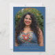 This design features an elegant style inspired by Spanish and Mexican folk art, incorporating a delicate floral border that imitates the look of traditional embroidery. The palette in blue tones adds a sophisticated, fresh, and culturally evocative touch, enhancing the festive essence of a quinceañera celebration. The floral motifs, balanced and ornamental, frame the design with an artisanal charm that blends modernity and tradition. On the back, the card includes a full-page photo, perfect for highlighting a special portrait of the quinceañera.