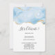 Invitation à une fête d'anniversaire avec un beau design d'agate bleu glacé et des accents de paillettes dorées fausses.