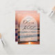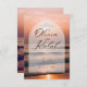 Si vous cherchez un mariage sur la plage, alors c'est l'invitation qu'il vous faut. Le fond est une scène de plage dans des couleurs corail douces avec un coucher de soleil au loin.