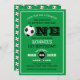 Touche le gros ! Une invitation d'anniversaire pour votre petit champion qui en tourne un, avec un thème football/football, avec un arrière - plan vert, texte blanc et noir, un football, et un modèle moderne de 1er anniversaire qui est facile à customiser.