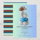 Boy Football 6e anniversaire de fête Invitation. Bleu doré, vert et marron. ballons gonflables.